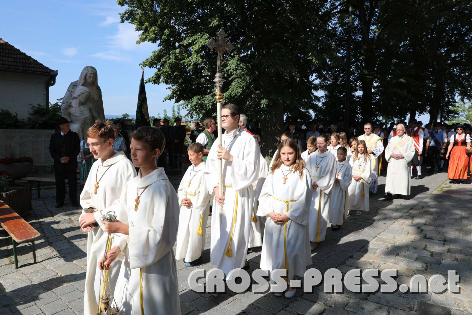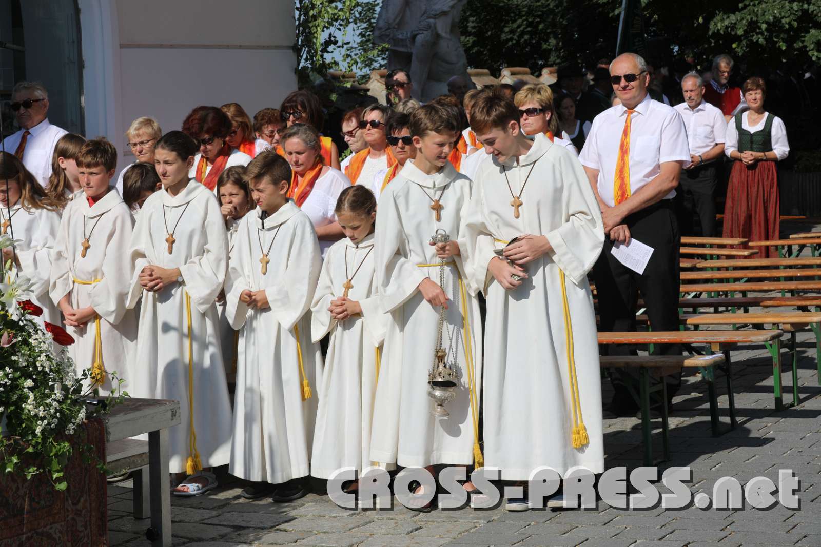 MusikkapelleEnzug der TrachtenErstkommunionskiunder n ihren weisen Kleider.EinzugGoldhaubenErstkommunionskinderPfarrer Vidović beginnt mit Gottesdienst.MinistrantenMinistrantenPfarrer Nikolaus VidovićLesungLesungPfr. Vidović segnet den Diakon vor den Evangelium.Evangelium Shopping CartSelect All None Keep only selected Add selected