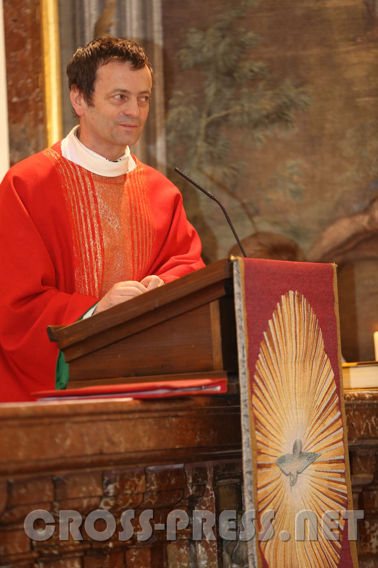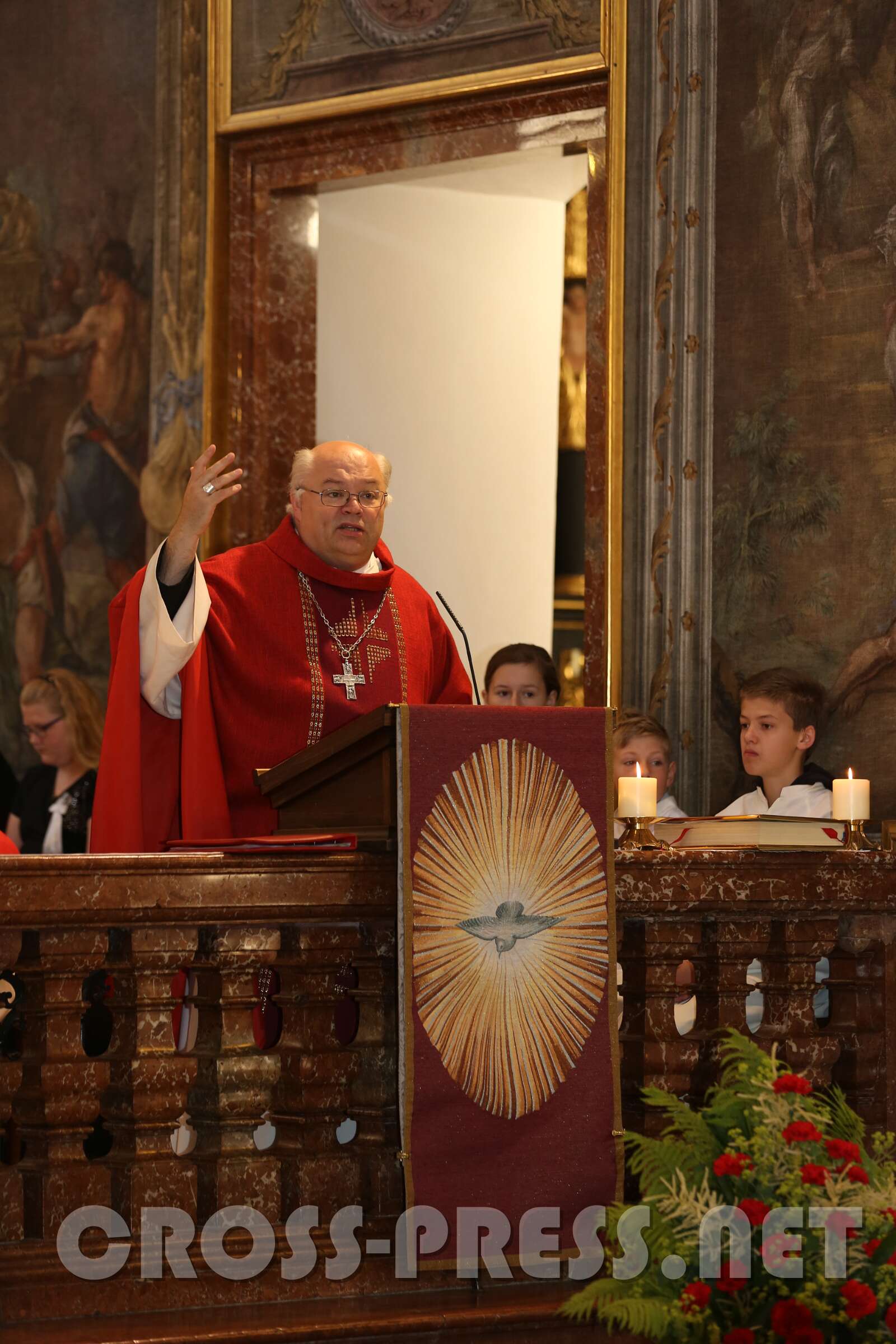 Die 30 Firmlinge in der ersten und 39 in der zweiten Messe erfuhren von ihrem firmspender Abt Petrus Pilsinger, dass es beim Fußballspielen neben dem Beachten der Regeln vor allem auf den Geist ankomme, der dahinter stehe.   Denn viele würden gut spielen, aber nur wenige stechen hervor, wie etwa David Alaba.   Ihm sei es wichtig, ein religiöses, also mit Gott verbundenes Leben zu führen.   Er trägt unter seinem Trikot ein Leiberl, auf dem steht: "Meine Kraft liegt in Jesus!", und meinte in einem Interview:  "Ein Leben ohne Gott ist wie Fußball ohne Ball."   Es komme darauf an, den "Geist der Gebote" zu leben (vgl. Evangelium, Joh.14,15: "Wenn ihr mich liebt, werdet ihr meine Gebote halten!").   Diese seien nicht dazu da, um unser Gewissen zu beruhigen ("… hab eh niemanden umgebracht, nichts gestohlen, und lügen tu ich nur, wenn's ungedingt sein muss !").   Man fragt sich oft, wie Menschen mit einem schweren Schicksal trotzdem eine Ermutigung für uns sein können - wie sie das wohl schaffen.   Es ist der Heilige Geist, der sie ermutigt und stärkt.   Er lässt auch uns wissen, dass wir nicht allein sind. Jesus hat ihn auch uns geschickt, jedem, der gefirmt ist.   Wir müssen aber auch offen sein für Ihn.
