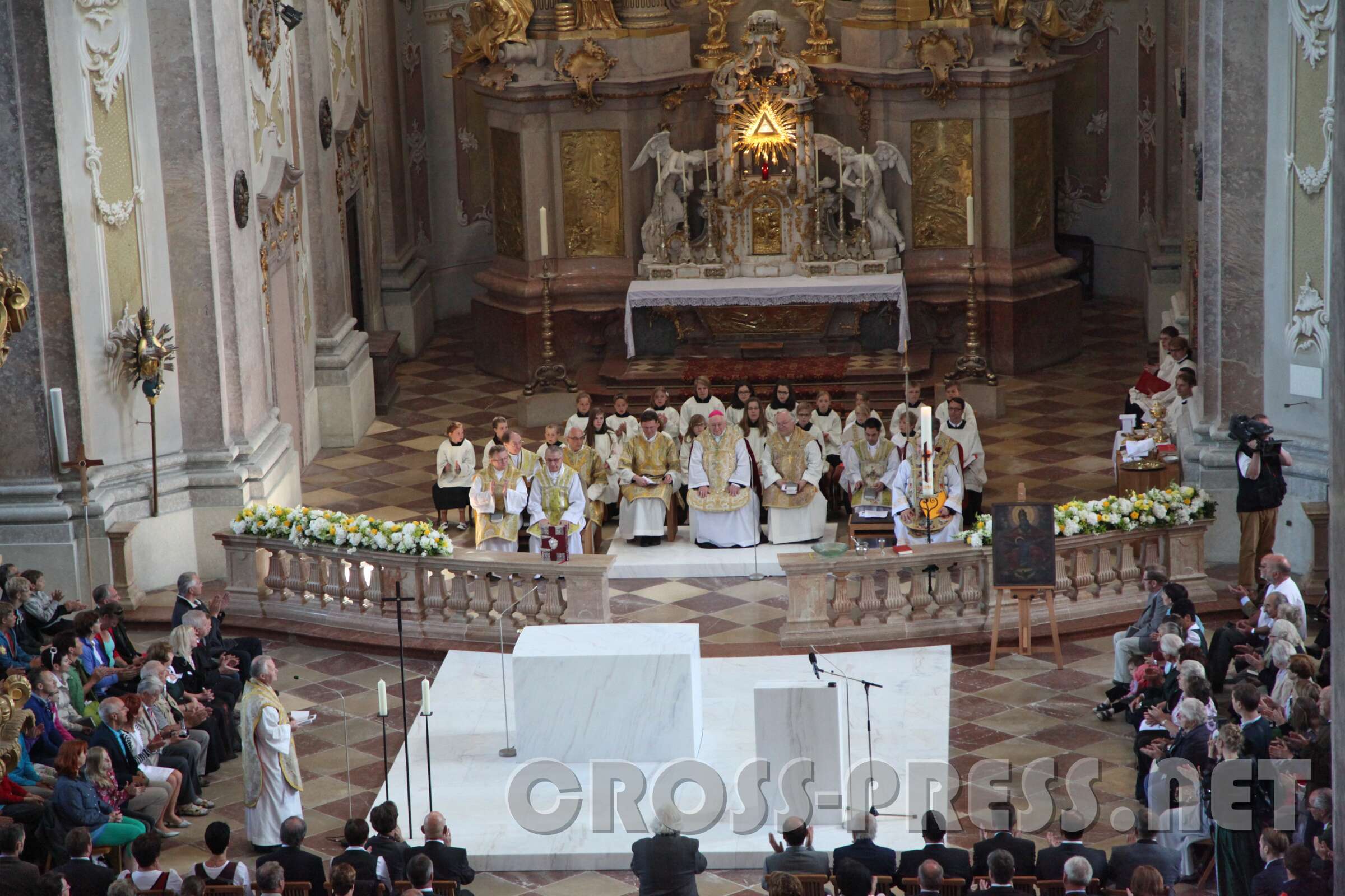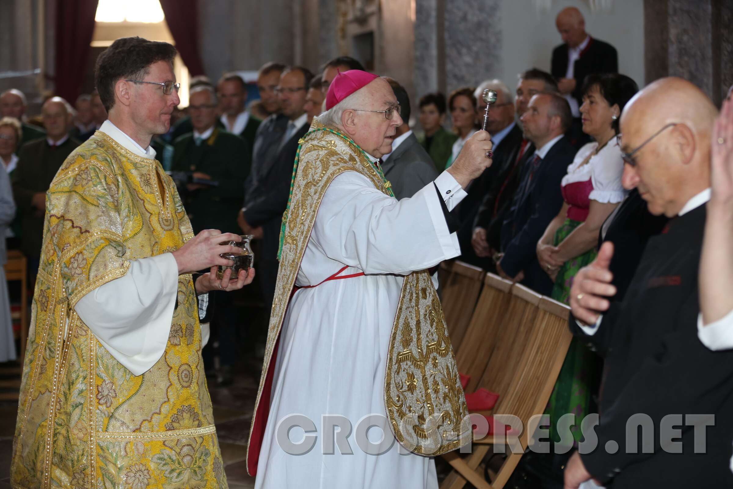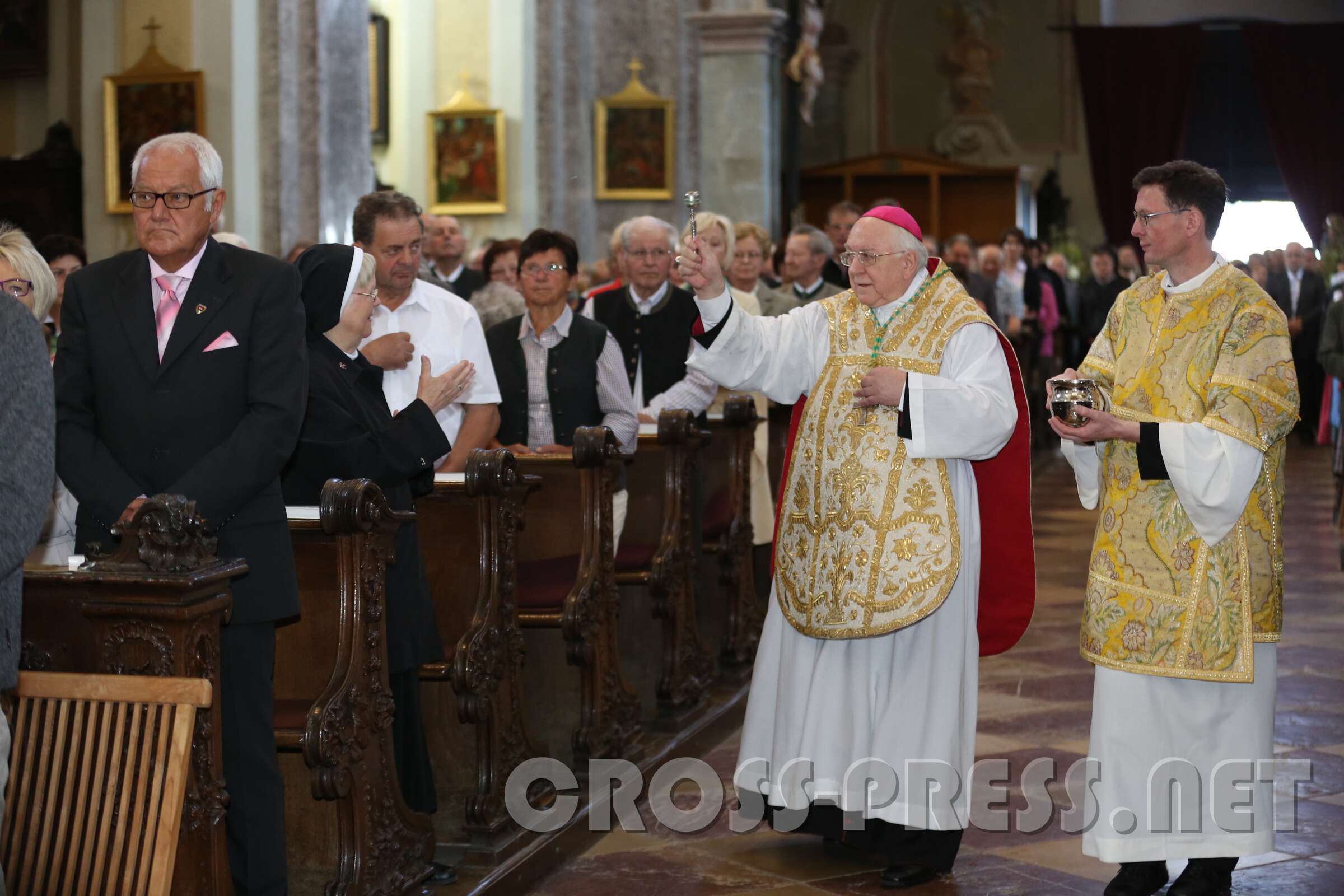 Nuntius Dr. Peter Stephan Zurbriggen zelebrierte den Festgottesdienst mit Altarweihe und Wiedereinsetzung des restaurierten Gnadenbilds der Allerheiligster Dreifaltigkeit am Hochaltar. Er überbrachte eine Grußbotschaft von Diözesanbischof Klaus Küng und sogar von Papst Franziskus.