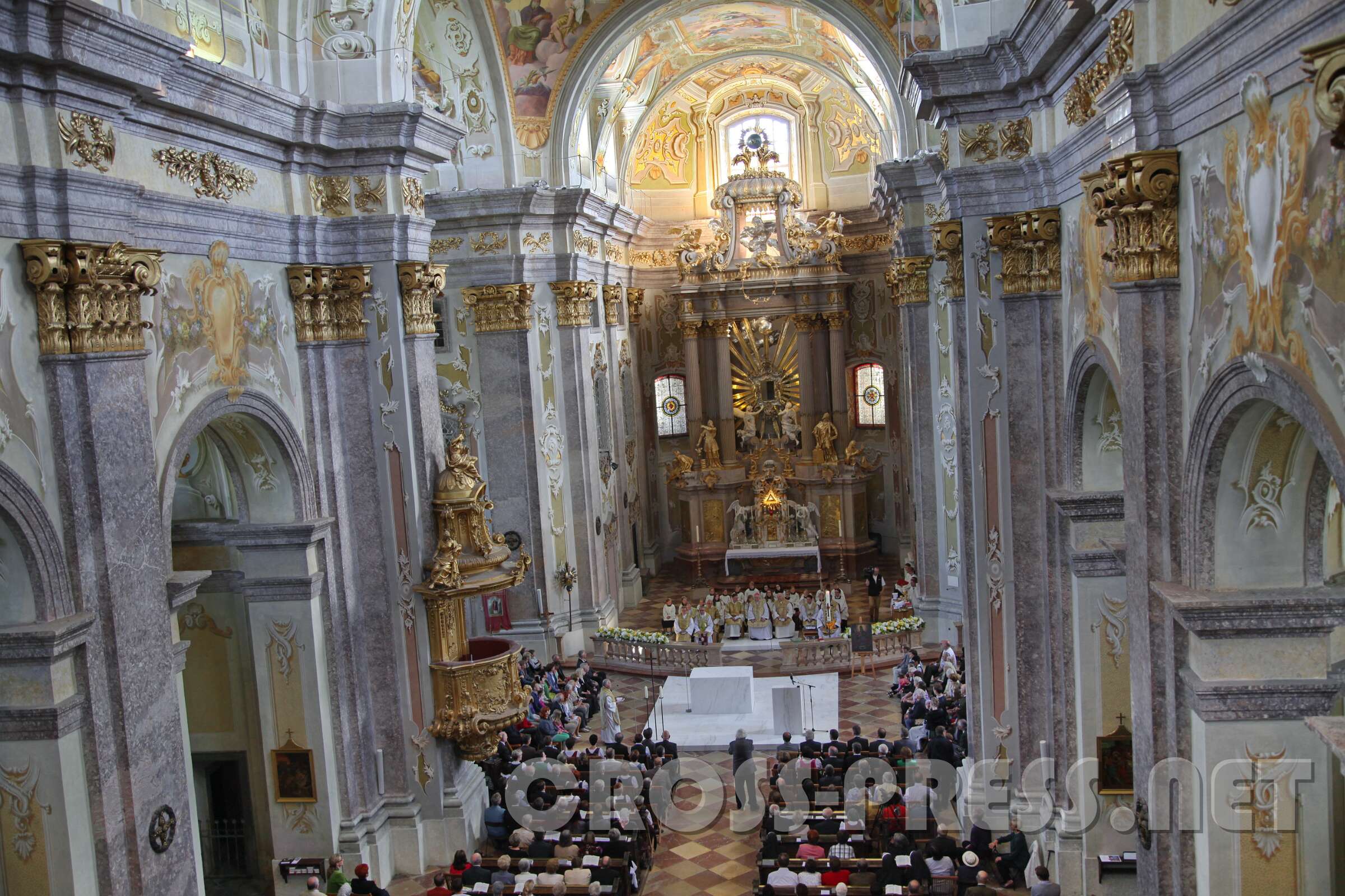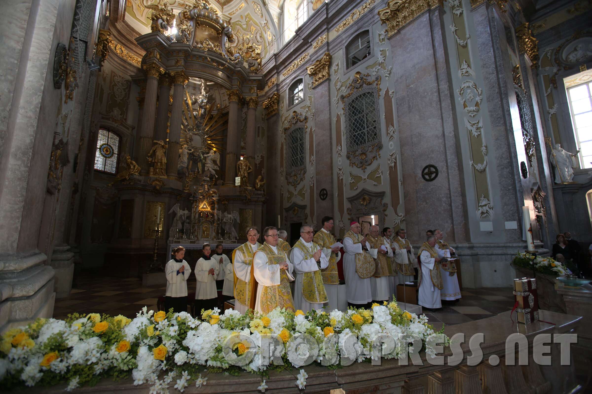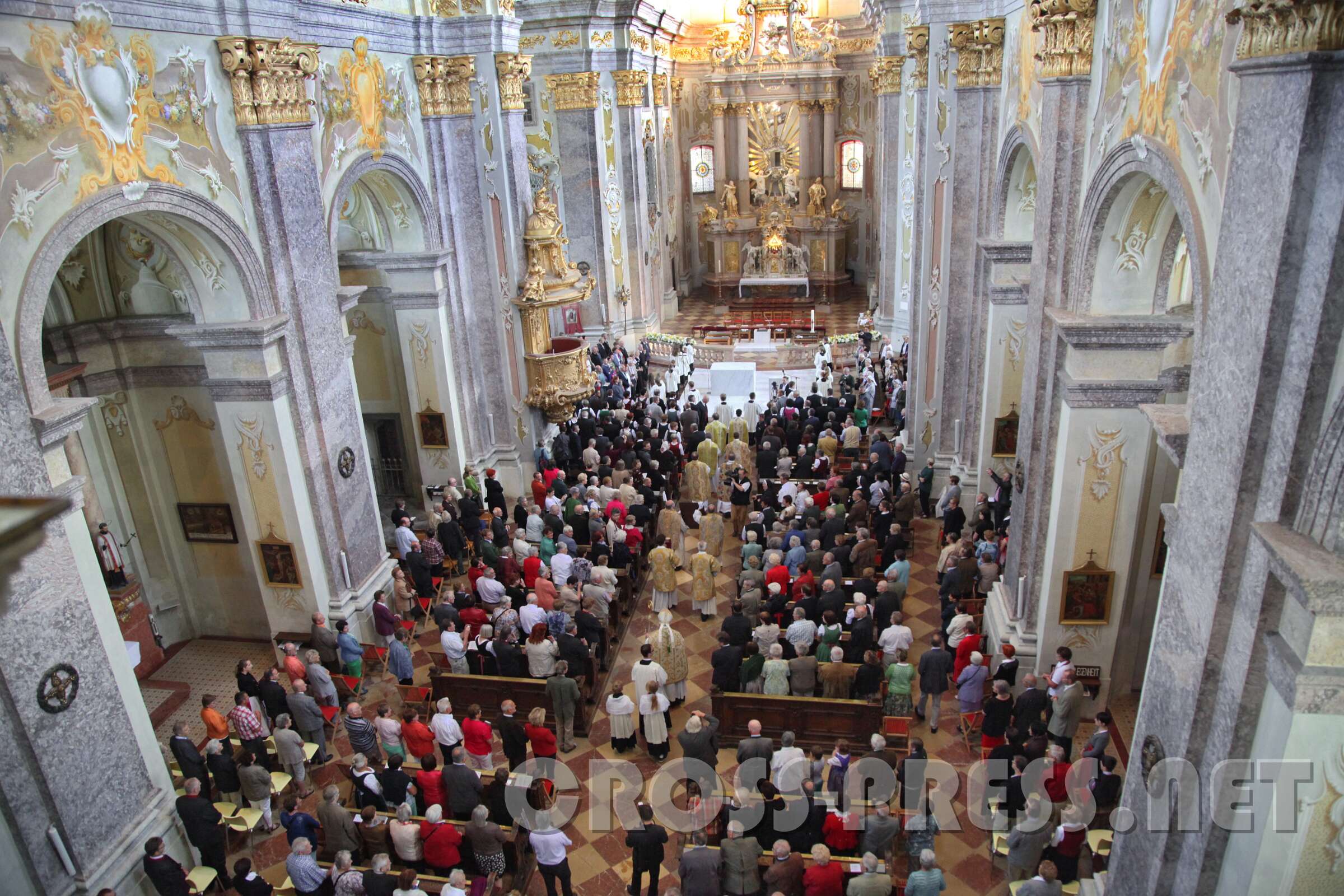 Nuntius Dr. Peter Stephan Zurbriggen zelebrierte den Festgottesdienst mit Altarweihe und Wiedereinsetzung des restaurierten Gnadenbilds der Allerheiligster Dreifaltigkeit am Hochaltar. Er überbrachte eine Grußbotschaft von Diözesanbischof Klaus Küng und sogar von Papst Franziskus.