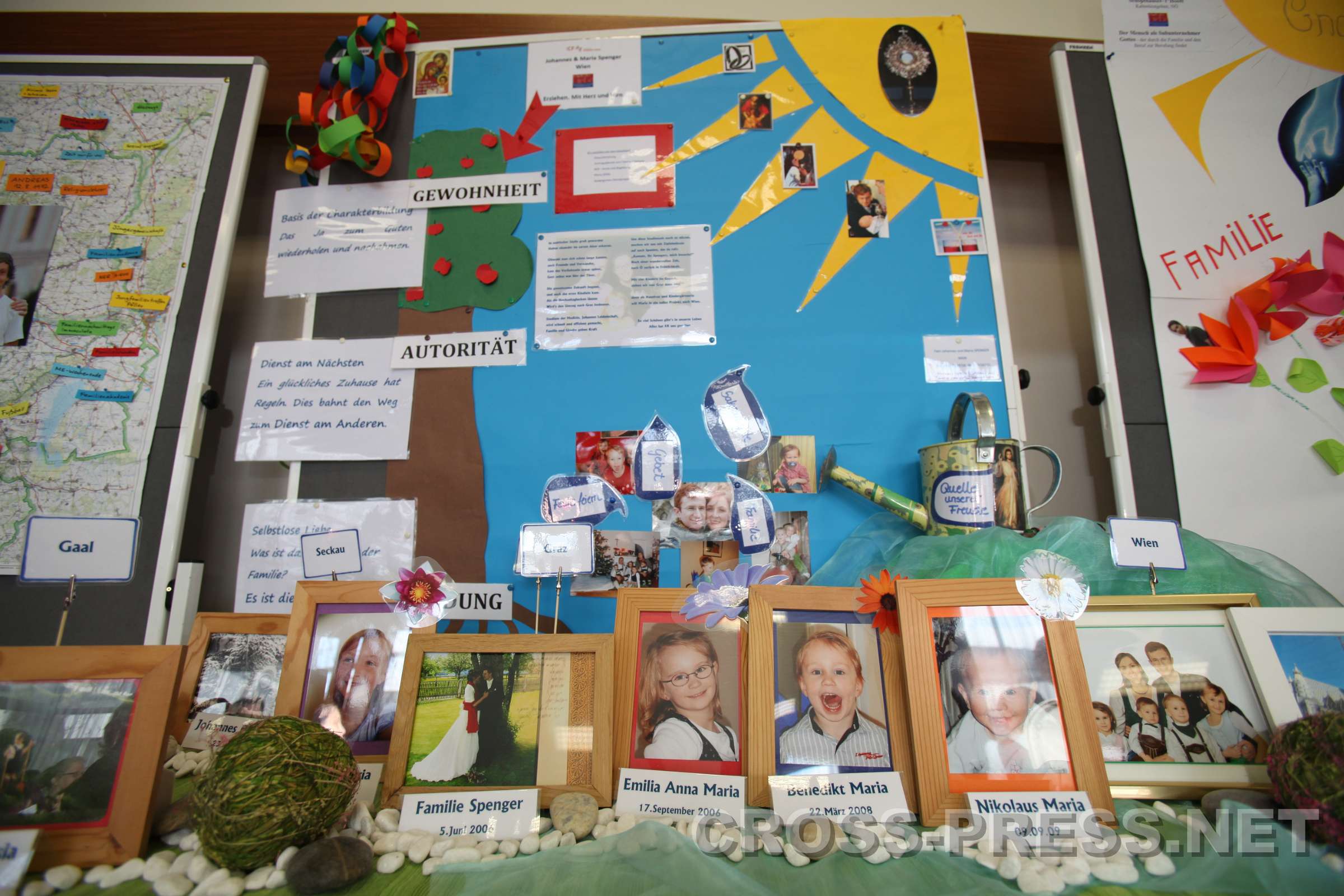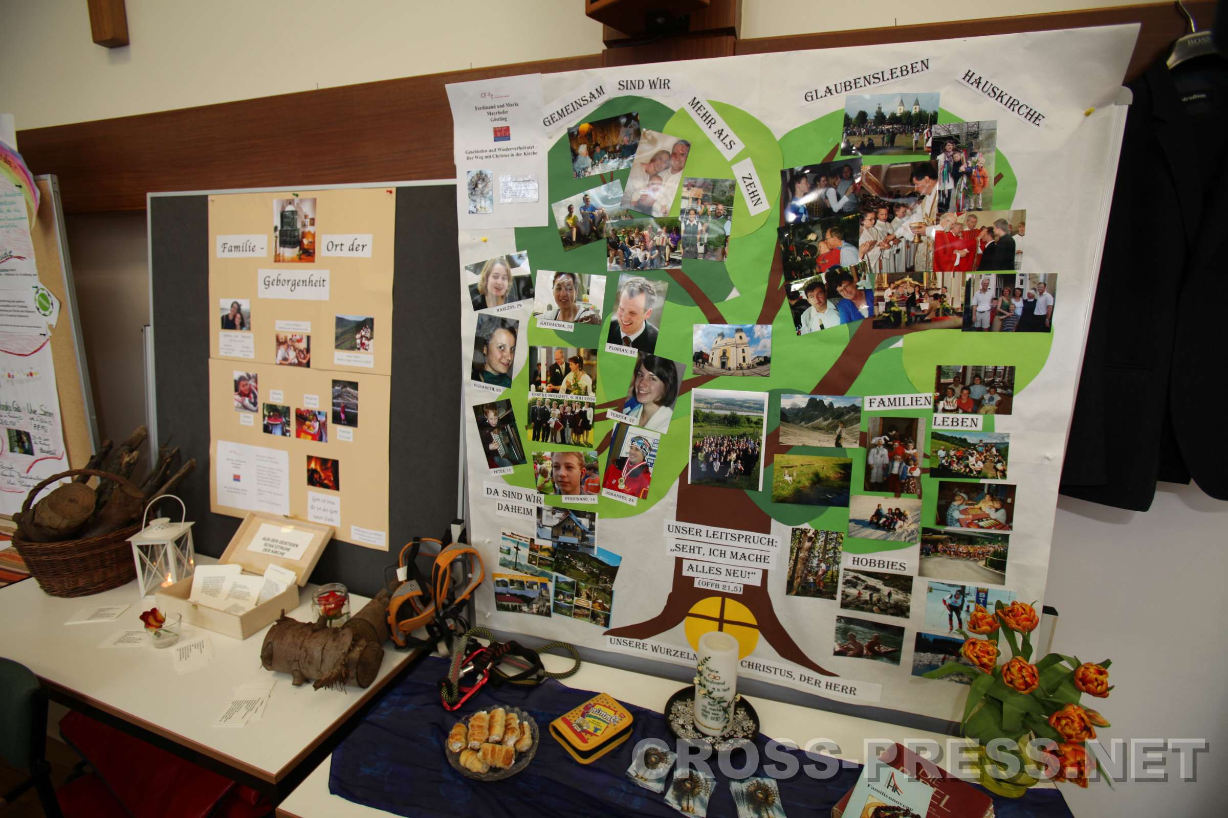 Die Absolventen pr�sentierten ihre Familien auf bunten Schautafeln und Tischen.