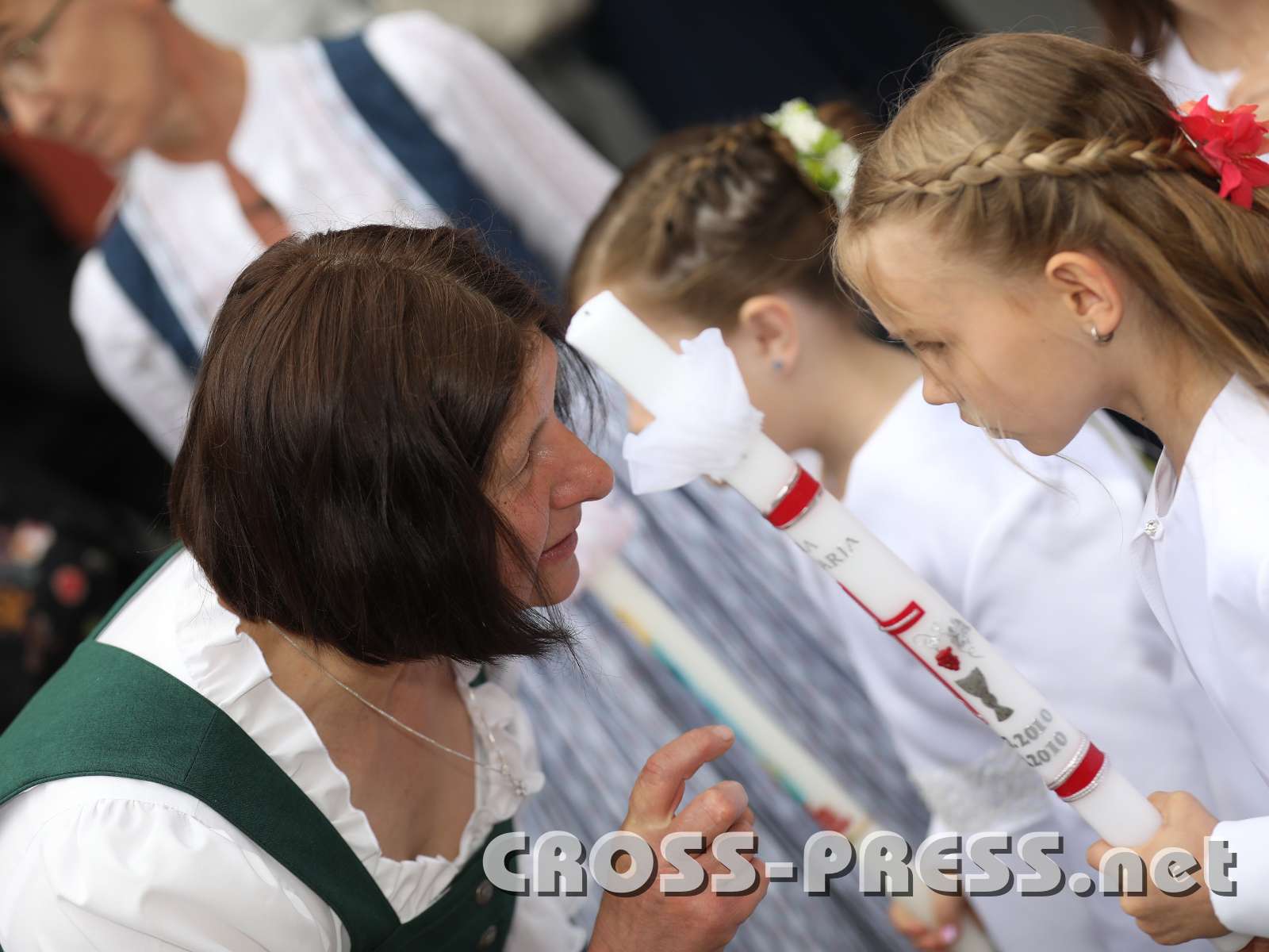 Erstkommunion 2018 in Wolfsbach Religionslehrerin Brigitte Brunninger gibt letzte Anweisungen.