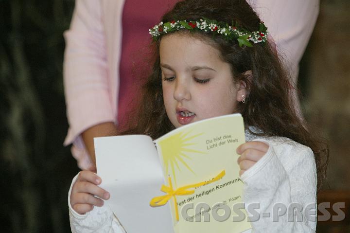 KAMERA: Canon EOS-1DS | DATUM: 17.05.07 11:06 | AUFLÖSUNG: 4064 x 2704 | ISO-EINSTELLUNG: 640 | BELICHTUNGSMODUS: Auto exposure | BELICHTUNGSDAUER: 1/50s | ÖFFNUNG: 5.6 | BRENNWEITE: 305.0mm | BLITZ: Flash fired | Headline: Erstkommunion der Pfarre zur Allerheiligsten Dreifaltigkeit (Franziskaner-Pfarre) | City: St.Pölten | Copyright: Jerko Malinar | Keywords: Erstkommunion