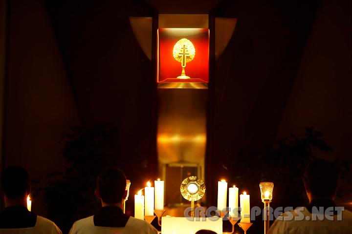 | KAMERA: Canon EOS-1DS | DATUM: 02.11.07 21:24 | AUFLÖSUNG: 4000 x 2667 | ISO-EINSTELLUNG: 1250 | BELICHTUNGSMODUS: Aperture priority | BELICHTUNGSDAUER: 1/15s | ÖFFNUNG: 2.8 | BRENNWEITE: 125.0mm | White Balance: Auto white balance | BLITZ: No | Headline: Foto Feature Stift Heiligenkreuz | City: Heiligenkreuz | State/Province: NÖ | Country: Austria | Copyright: Jerko Malinar | Caption: Jesus im Brotsakrament, über Ihm, der Überlieferung nach, ein Stück seines Kreuzes im Reliquiar. | Keywords: Jugendvesper | See map |