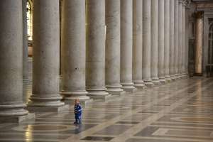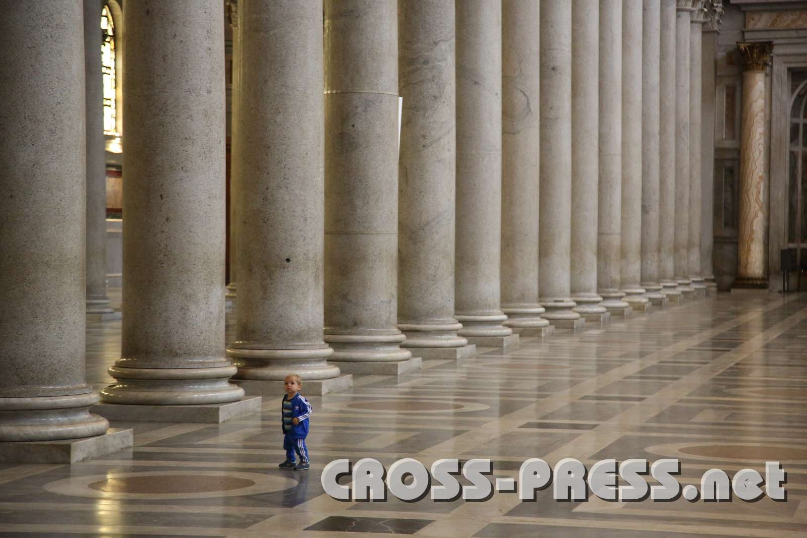 Klein Simon unter den Säulen.
