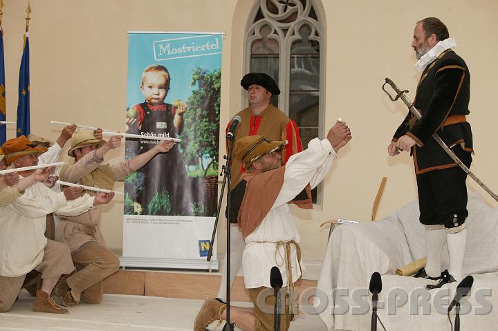 | KAMERA: Canon EOS-1DS | DATUM: 28.04.07 14:39 | AUFLÖSUNG: 4064 x 2704 | ISO-EINSTELLUNG: 100 | BELICHTUNGSMODUS: Auto exposure | BELICHTUNGSDAUER: 1/250s | ÖFFNUNG: 5.6 | BRENNWEITE: 70.0mm | BLITZ: Flash fired | Headline: Feuer & Erde, Kleinregionsfest | City: St.Peter in der Au | Copyright: Jerko Malinar | Caption: Szene aus dem Stück 'Wider die Obrigkeit' von Herbert Pauli, aufgeführt von der Theatergruppe St.Peter in der Au. |