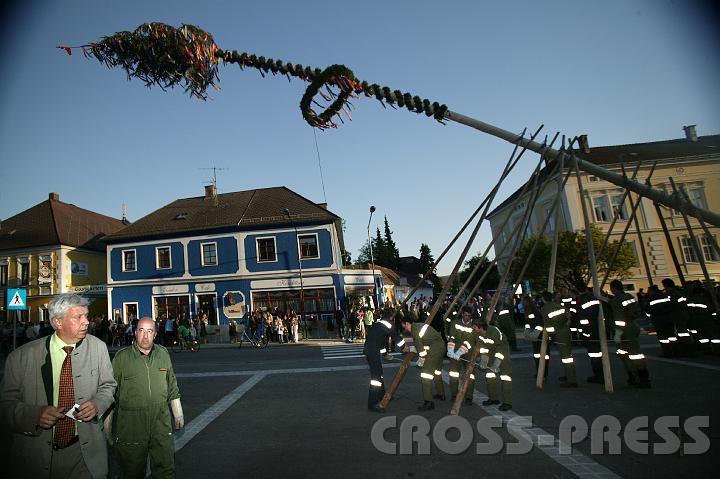 | KAMERA: Canon EOS-1DS | DATUM: 30.04.07 19:16 | AUFLÖSUNG: 4064 x 2704 | ISO-EINSTELLUNG: 100 | BELICHTUNGSMODUS: Auto exposure | BELICHTUNGSDAUER: 1/250s | ÖFFNUNG: 4.5 | BRENNWEITE: 16.0mm | BLITZ: Flash fired | Headline: Maibaumsetzen | City: St.Peter in der Au | Copyright: Jerko Malinar | Caption: Bgm. J.Heuras inspiziert mit Walter Lemberger, dem ehem. FF-Kommandantstv. die Lage. | Keywords: Maibaumsetzen |
