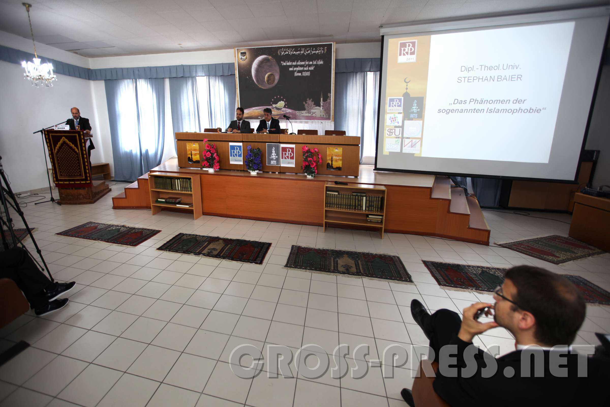 In diesem Raum, in welchem sonst gebetet wird, fand die wissenschaftliche Tagung zum Thema 'Religiophobie' statt. Rechts RPP Gründer Dr. Raphael Bonelli.