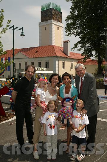 | KAMERA: Canon EOS-1DS | DATUM: 23.05.07 12:37 | AUFLÖSUNG: 2553 x 3830 | ISO-EINSTELLUNG: 50 | BELICHTUNGSMODUS: Auto exposure | BELICHTUNGSDAUER: 1/100s | ÖFFNUNG: 7.1 | BRENNWEITE: 35.0mm | BLITZ: Flash fired | Headline: Kindergartenfest im Rahmen der NÖ Landesausstellung | City: St.Peter in der Au | Copyright: Jerko Malinar | Caption: Landesrätin Mag. Johanna Mikl-Leitner und LAbg. Bürgermeister von St.Peter/Au Mag. Johann Heuras mit Schauspielerin Sabine Petzl. |