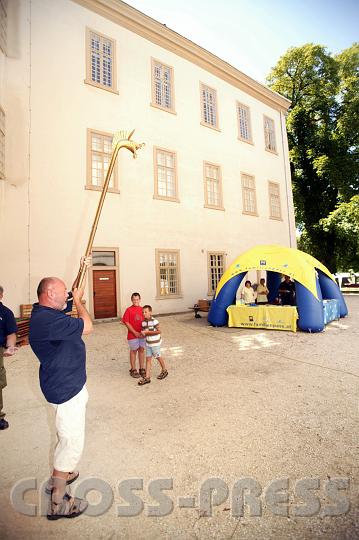 | KAMERA: Canon EOS-1DS | DATUM: 14.07.07 14:57 | AUFLÖSUNG: 2704 x 4064 | ISO-EINSTELLUNG: 100 | BELICHTUNGSMODUS: Aperture priority | BELICHTUNGSDAUER: 1/250s | ÖFFNUNG: 2.8 | BRENNWEITE: 16.0mm | BLITZ: Flash fired | Headline: Familienpass-Wochenende in Asparn an der Zaya | City: Asparn an der Zaya | State/Province: HÖ | Country: Austria | Copyright: Jerko Malinar | Caption: Dr. Ernst Lauermann, Leiter des Museums für Urgeschichte des Landes NÖ, begrüßt die Gäste mit keltischem Horn. | Keywords: Familien | See map |