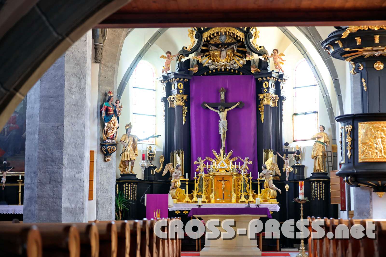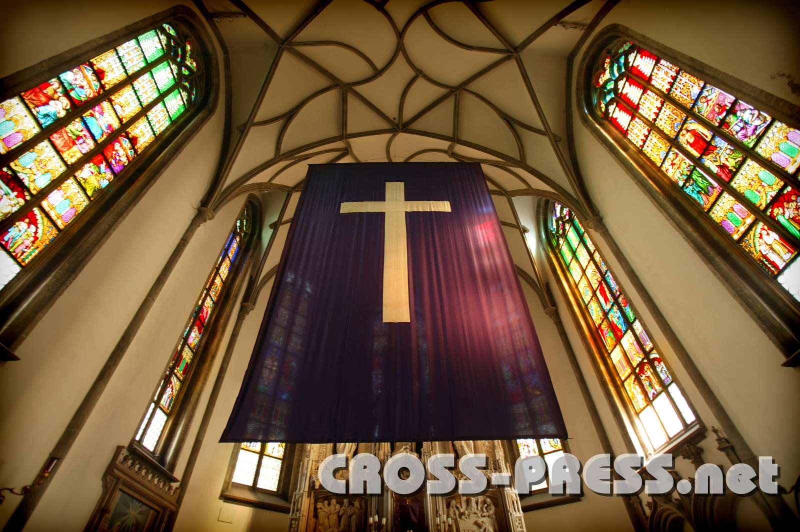 Durch den Fastentuch bekommt die Stiftskirche eine mystische Färbung.