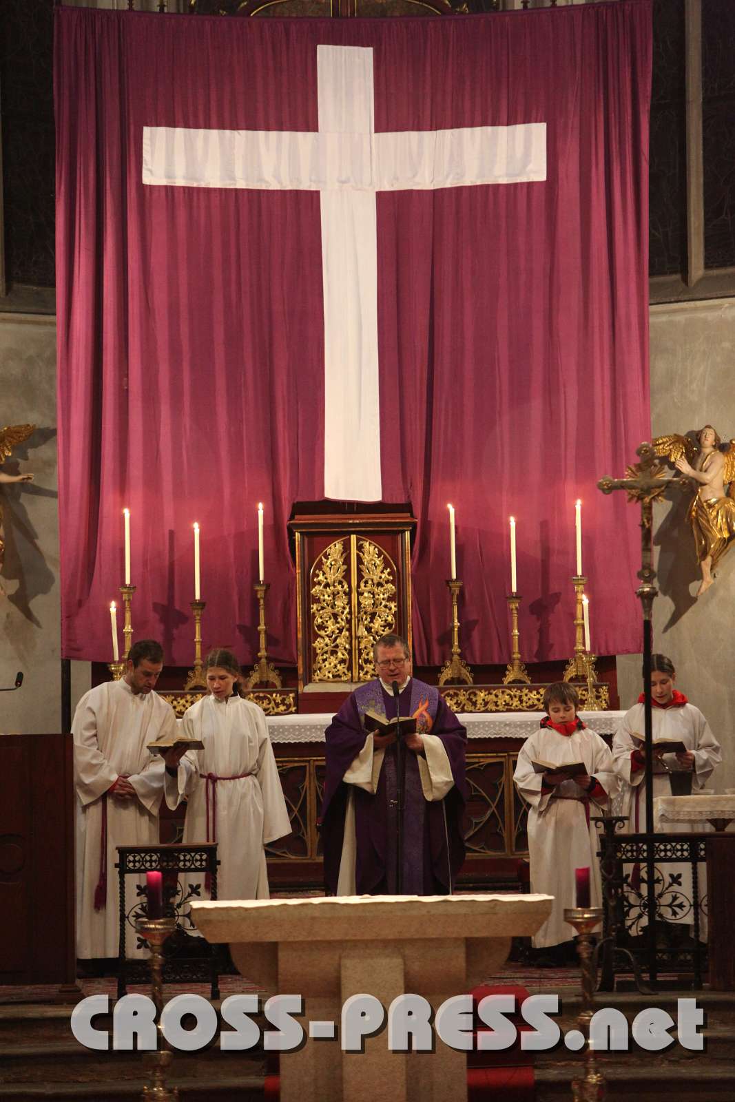 Die Stiftskirche ist verdunkelt, nur das Fastentuch leuchtet noch. Die Schmerzensstunden Jesu. O Du unschuldiges Lamm, was hast Du für uns gelitten !!!